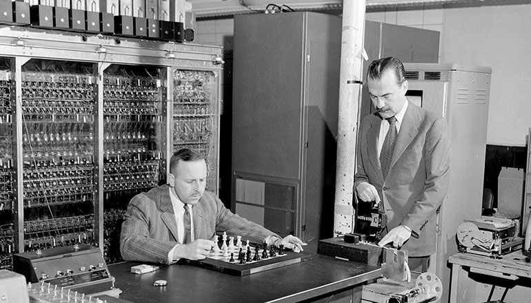 コンピューター黎明期のMANIAC-Iは、1956年にアメリカ・ロスアラモス国立研究所でチェスの対戦プログラムを実装し、研究者たちとプレイをしたという記録が残されています。