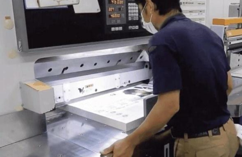 印刷物をカットする刃は重みがあり、刃の重みでどうしても紙が多少ずれてしまいます。このずれを「断裁ずれ」と言います。 また、刃の状態が悪いと紙が真っ直ぐ切れず、1枚目と1000枚目ではコンマ数ミリのズレが発生し、仕上がりサイズが変わってしまうのです。また、紙は湿度によって伸びたり縮んだりしていますので特に注意が必要です