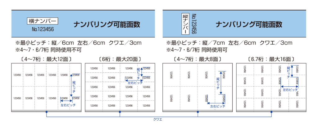ナンバリング印刷はオンデマンド印刷とオフセット印刷の両方で可能ですが、オフセット印刷の場合は所謂アナログ方式のため書体やサイズは固定であり桁数や位置などにも制限がありますが、大量生産に向いているためコストを抑えることができます。