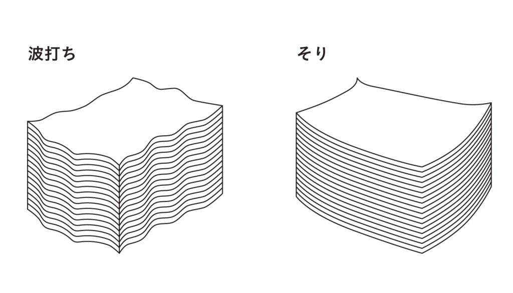 実際に紙の波打ちや四隅の反りというのが起きる理由は: